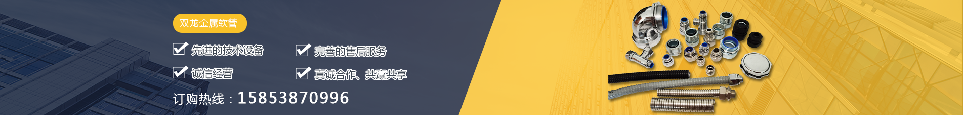 泰安市雙龍線路器材有限公司致力于供應(yīng)包塑金屬軟管,金屬軟管接頭, 不銹鋼軟管接頭,平包塑軟管的銷售、售后服務(wù)于一體的綜合性、現(xiàn)代化 企業(yè)。生產(chǎn)基地 位山東省“一山、一水、一圣人”黃金旅游熱線的中心和泰安市規(guī)劃的工 業(yè)長(zhǎng)廊核心位置,工業(yè)發(fā)達(dá),歷史文化悠久,京滬、京福高速公路橫跨我市,交通便利,乘高鐵2-3小時(shí)可達(dá)北京或上海。